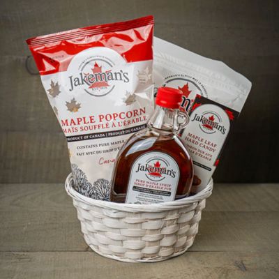 A sweet sampler of Canadian favourites, featuring maple syrup, popcorn, candies, and pancake mix — all beautifully wrapped and ready to gift. Each basket features the finest maple products, made fresh to order. We recommend it as a cozy, crowd-pleasing gift that captures the true taste of Canada.