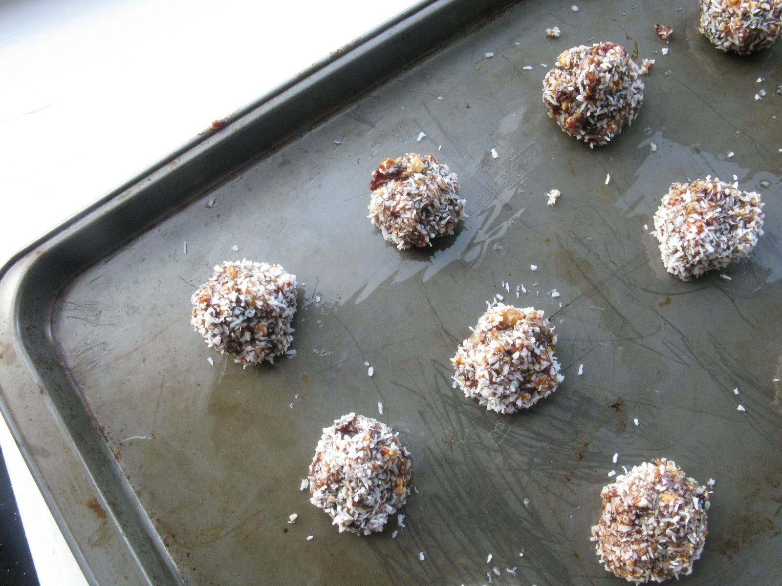 them in coconut, they are even easier to shape. Place them on a greased cookie sheet.