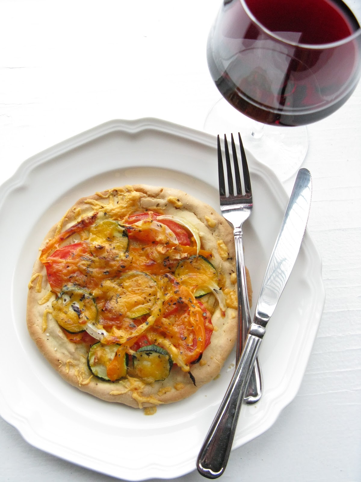 1. This pizza was so delicious and satisfying I was completely surprised. Mine was cheese-free because I cannot eat dairy. The combination of garlic, tomatoes, onions and peppers tasted great. I can’t wait to try it with local fresh tomatoes and basil…. hhmmmm. Thanks Em!